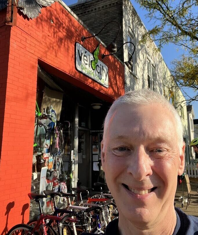 John McClanahan is a long-time bike nut. He raced BMX as a (younger) kid and for more than 23 years now has biked to work from Alexandria to DC during all seasons. He first became familiar with Vélocity through Christian, Vélocity co-founder and neighbor, who has shared ideas and guidance for a number of John’s custom bike builds. John has served on the Vélocity board since 2023, focusing on property management and financial matters.