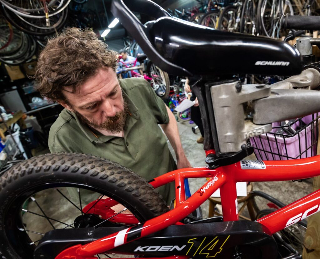Andy Fisher has volunteered with Vélocity since 2023. “I was a bike commuter. Now I’m a bike enthusiast,” he says. “I enjoy getting people on refurbished bicycles. It’s a great way to re-CYCLE and get bikes to kids and adults who need them. Velocity is a great place to volunteer, serve the community, and learn more about bikes.” Andy is retired from the U.S. Senate staff and the nonprofit sector. He served on the Board of Governors of the National Press Club where he still volunteers, and was the founding executive director of the National Forest Foundation.