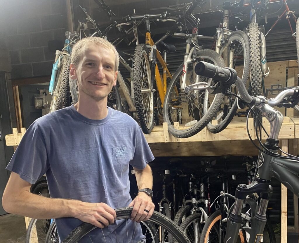 Tyler Brin started volunteering with Velocity shortly after moving to the area in 2024. He enjoys tinkering with all things mechanical and especially loves being able to bring neglected bicycles back to life. When not working on bikes, you may find him cruising on the Mt Vernon Trail or exploring some of the local mountain bike trails.